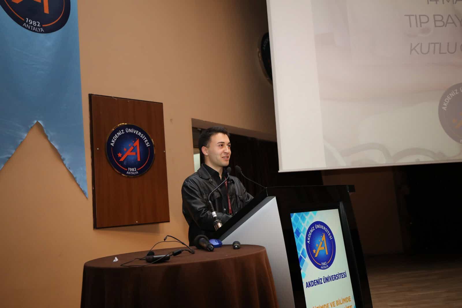 Akdeniz Üniversitesi Atatürk Konferans Salonu’nda gerçekleştirilen etkinliğe, Rektör Prof. Dr. Özlenen Özkan başta olmak üzere, rektör yardımcıları, Tıp Fakültesi Dekanı Prof. Dr. Yeşim Şenol, Antalya Tabip Odası Başkanı Dr. Hüseyin Can Ertürk, akademisyenler ve öğrenciler katıldı. Program, saygı duruşu ve İstiklal Marşı’nın ardından, Tıp Fakültesi 5. Dönem öğrencisi Orçun Mert Özsalman’ın müzik dinletisiyle devam etti.