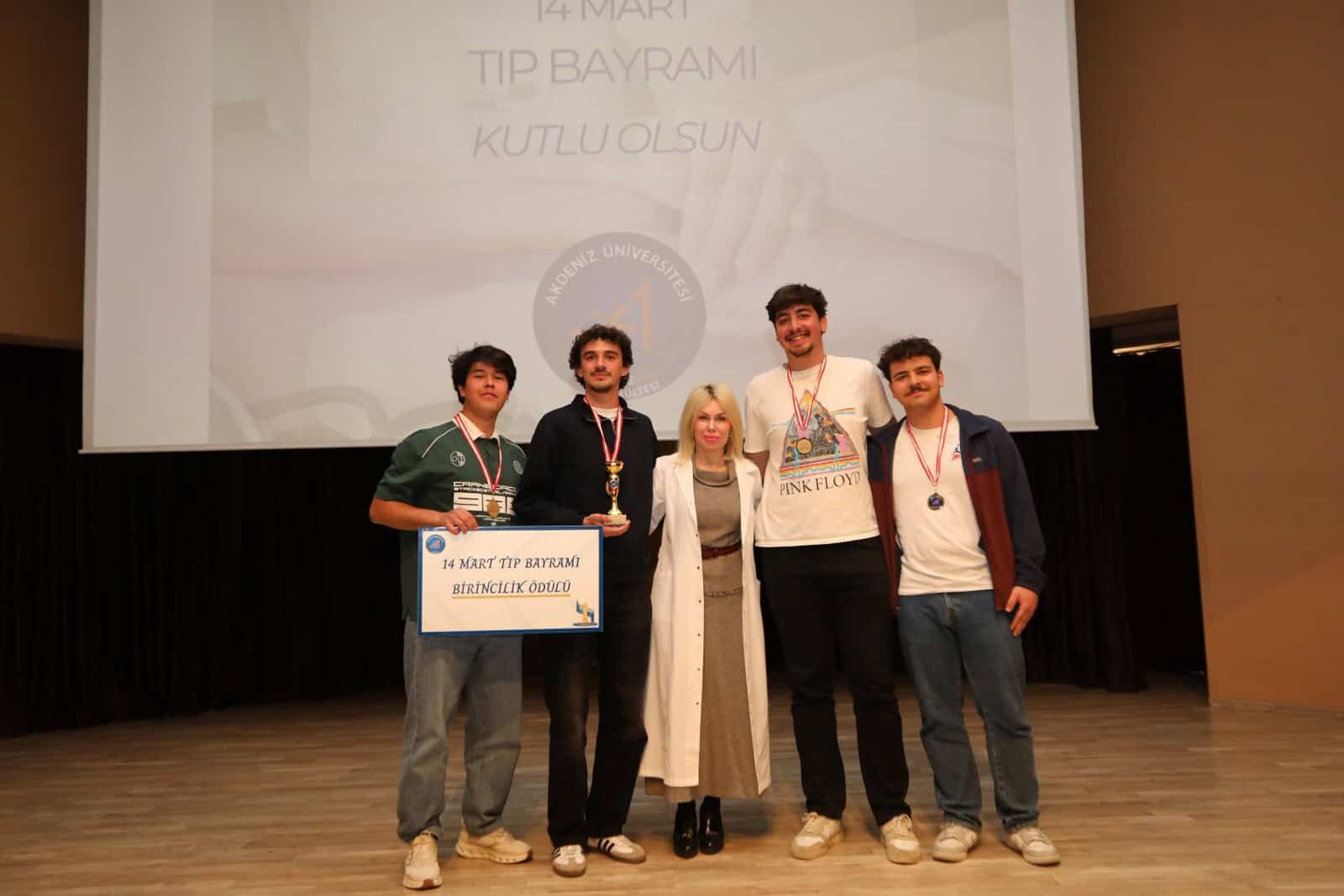Bu yıl ilk defa düzenlenen 14 Mart Tıpta Uzmanlık Tez Öneri Yarışmasının sonuçları açıklandı. Yarışmada Dr. Emel Şafak birinciliği elde etti. Ayrıca tıp eğitiminin kalitesini artıran anabilim dallarına teşekkür belgeleri, çeşitli yarışmalarda ve spor turnuvalarında dereceye giren öğrencilere ödüller ve madalyalar takdim edildi. Kutlama programı, toplu fotoğraf çekimiyle sona erdi.