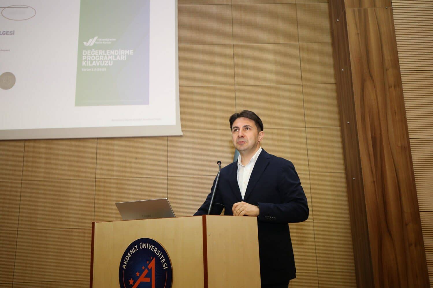 Kurumsal Gelişim ve Kalite Koordinatörü Öğr. Gör. Dr. Cem Sakarya, YÖKAK süreçleriyle ilgili bilgilendirme yaptı. Programın ilk bölümünde, liderlik, yönetişim, eğitim-öğretim, araştırma-geliştirme ve toplumsal katkı komisyonlarının hazırladığı veriler paylaşıldı.