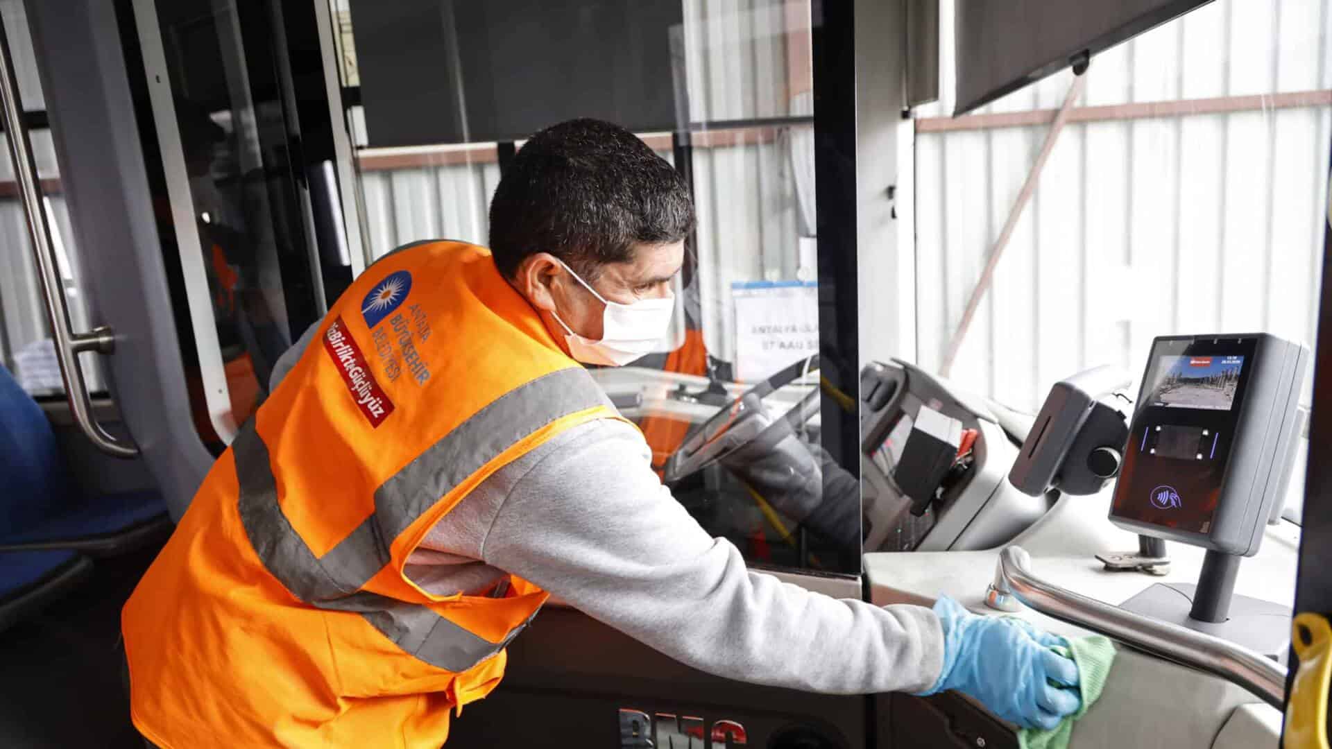Antalya Büyükşehir Belediyesi Toplu Taşıma Araçlarında Titiz Temizlik Uyguluyor