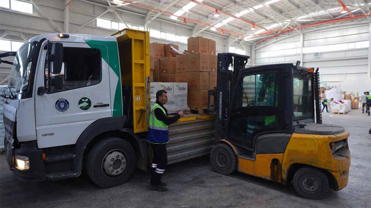 Bugüne kadar 2243 sevkiyatın yapıldığı merkezde, her gün yüzlerce kamyon ve minibüs yollara düşerek vatandaşların ihtiyaçlarına cevap veriyor.