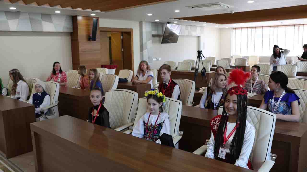 Antalya Büyükşehir Belediyesi’nin FOMGED Çocuk Kulübüyle birlikte düzenlediği 24. Antalya Uluslararası Çocuk Festivali için Kırgızistan, Litvanya, Estonya, Ukrayna, Azerbaycan, Rusya ve Kazakistan’dan gelen konuk ülke çocukları Büyükşehir Belediyesi Genel Sekreter Yardımcısı Mustafa Gürbüz’ü ziyaret etti. Gürbüz, 23 Nisan Ulusal Egemenlik ve Çocuk Bayramı’nı Ulu Önder Gazi Mustafa Kemal Atatürk’ün tüm dünya çocuklarına armağan ettiğini hatırlatarak, konuk ülke çocuklarını ağırlamaktan memnuniyet duyduğunu söyledi. Karşılıklı hediyeleşmenin gerçekleştiği ziyarette çocuklar etnik sazlarıyla mini bir konser verdi.