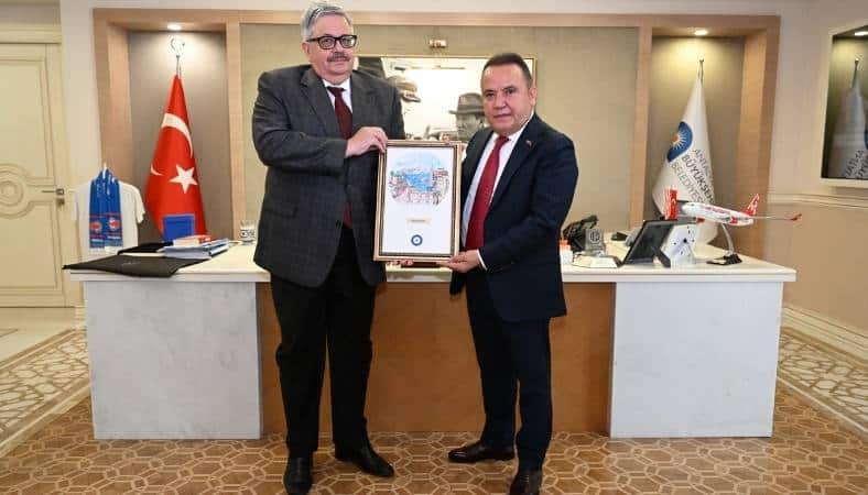 Rusya Federasyonu Ankara Büyükelçisi Aleksey Vladimiroviç Yerhov ve Antalya Başkonsolosu Sergey Vetrik, Antalya Büyükşehir Belediye Başkanı Muhittin Böcek’i ziyaret etti.