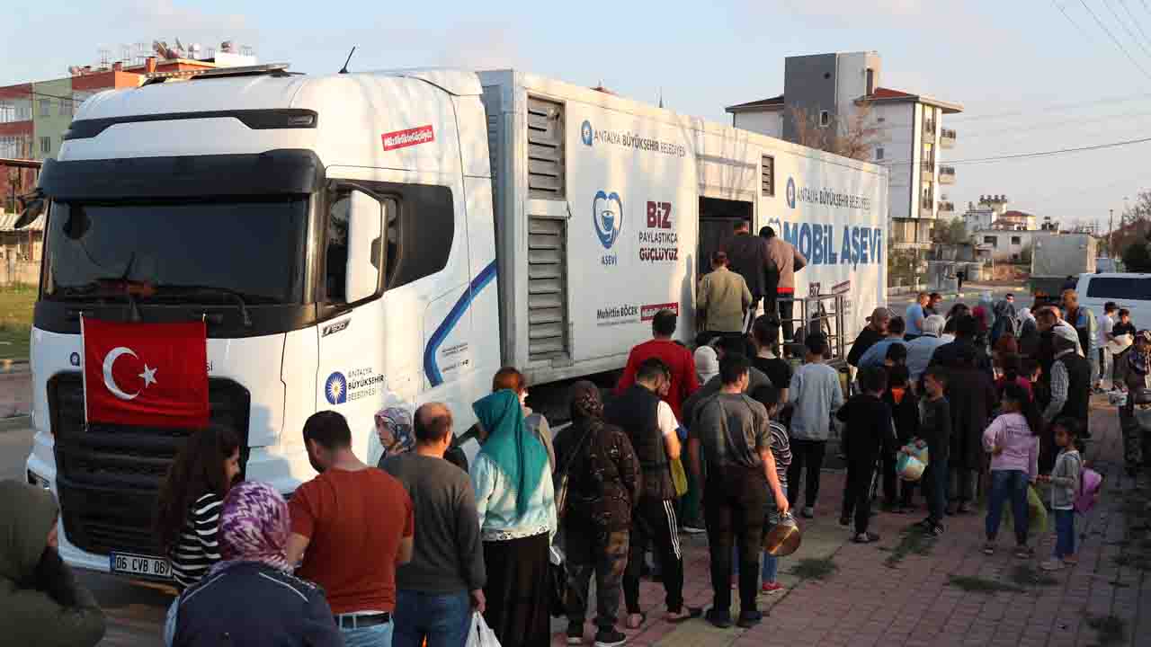 Antalya Büyükşehir Belediyesi, Ramazan ayında Mobil Aşevi Tırı ile mahallelerde iftar öncesi sıcak yemek dağıtımını sürdürüyor. Antalya Büyükşehir Belediyesi Ramazan ayında “İftarda...